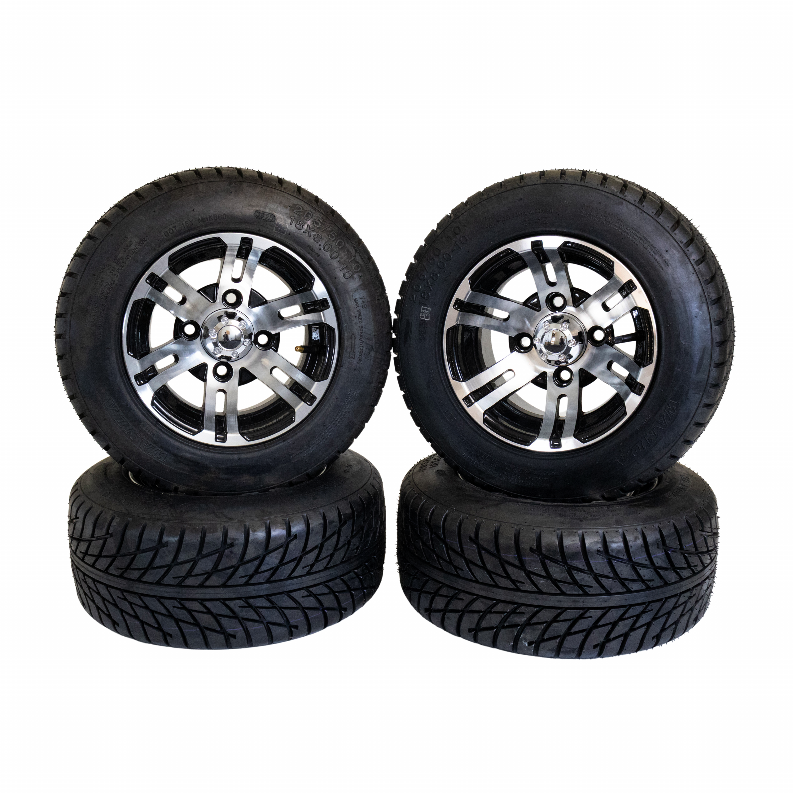 No need to adjust suspension or lift kits as these 10-inch wheels and 205/50-10 tyres will fit any golf cart. Simply select which cart you are putting them on below and that way we can make sure we include the correct wheel nuts in your order.